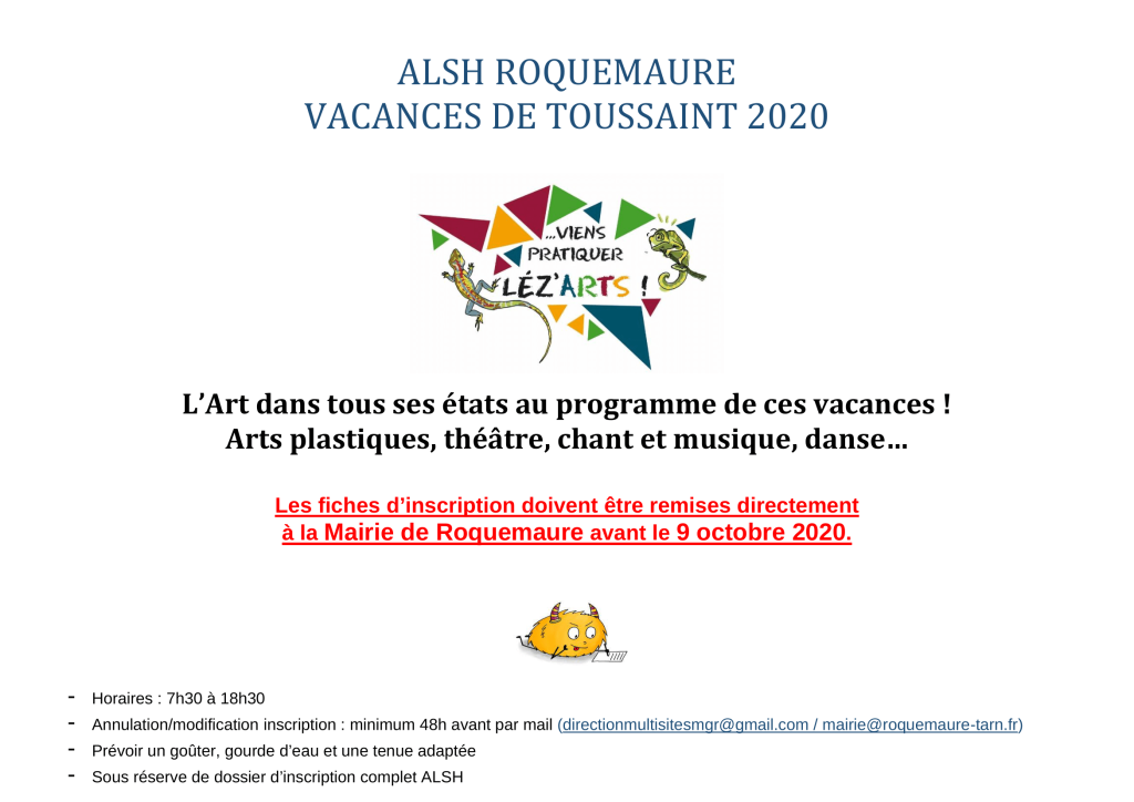 Les Inscriptions à l’Accueil de Loisirs pour la période du 19 au 30 octobre sont ouvertes !