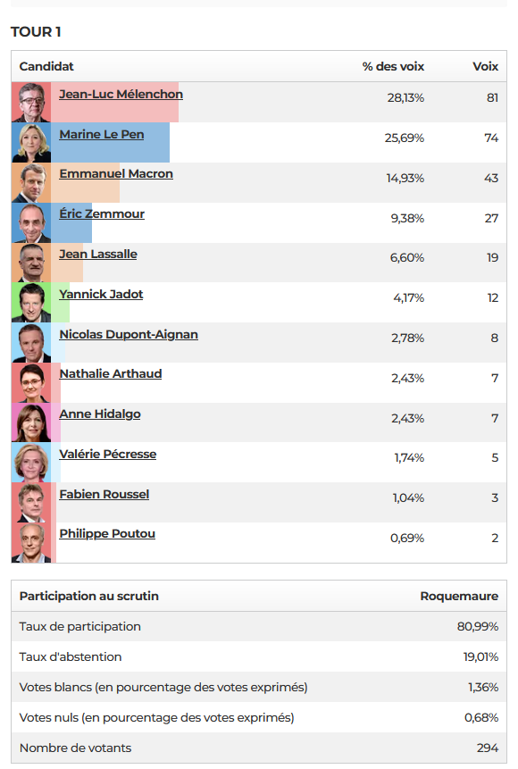 Tour 1 – Scrutin du 10 avril 2022